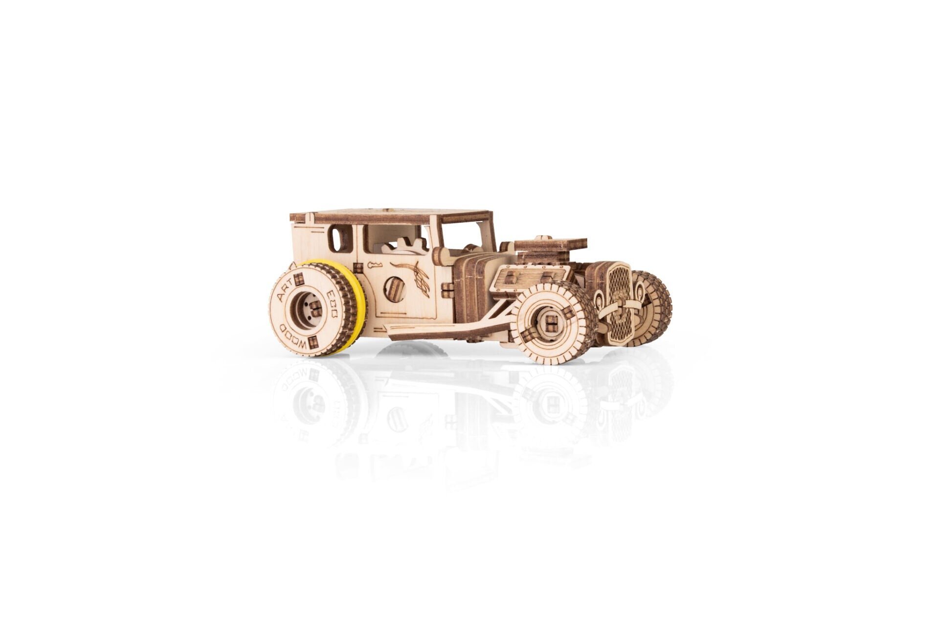 Medinis „Pocket Car Hot Rod“ modelis yra maža dėlionė, patogiai telpanti kišenėje. Modelis atspindi legendinę „Hot Rod“ estetiką – ikoniškus modifikuotus 1930–1950 m. automobilius, tapusius greičio, maišto ir amerikietiškos individualizuotos kultūros simboliu.