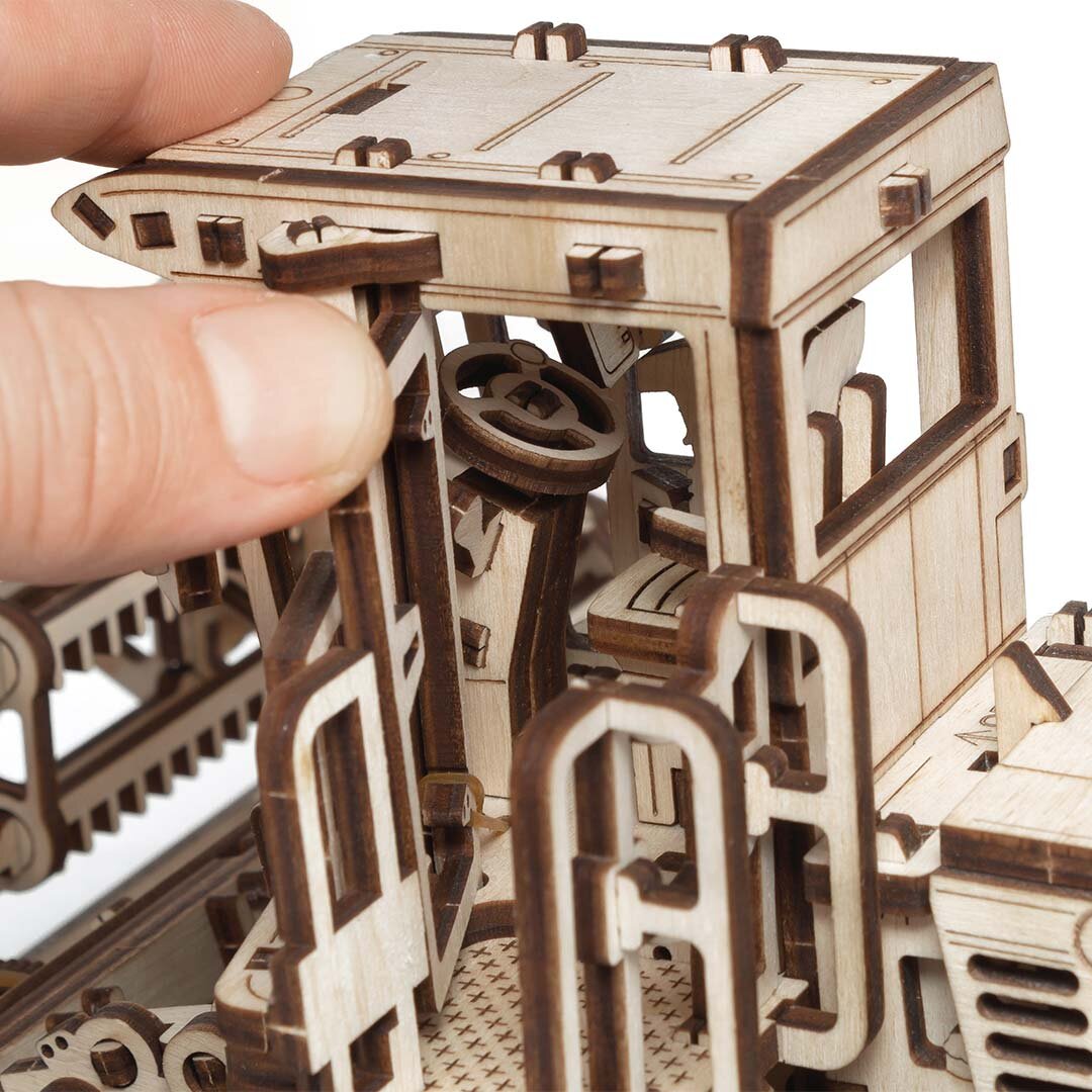 Šis medinis modelis yra ne tik dėlionė – tai funkcionalus mechaninis stebuklas , kuris pradžiugins kiekvieną, mėgstantį technologijas, kokybišką meistriškumą ir realistiškus inžinerinius mechanizmus.